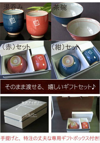 湯飲み&ご飯茶碗のセットはお父さん、お母さん、 おじいちゃん、おばあちゃんへの 父の日、母の日、敬老の日のギフトのプレゼントにも◎ 男性、女性を問わず誕生日の贈りものにも! 結婚祝い、記念日、出産祝い、誕生日、新築祝い、快気祝い、 還暦祝い、長寿祝い、古希、傘寿、米寿、卒寿など… 大切なお祝いのギフトは毎日使える!ほっと和む 彫和家(ほんわか)の名入れテーブルウェアで、世界にひとつのプレゼント! 仕様 / サイズ ■材 質:陶器(有田焼) ■内容:湯呑×1、飯碗×1の2点セット ■湯呑みサイズ:横幅7cm×縦8cm ■茶碗サイズ(赤):横幅11.7cm×高6cm ■茶碗サイズ(紺):横幅12.7cm×高7cm ■カラー:赤・紺の2色 配送方法 宅配便 彫刻内容 ■文字数:落かんデザインで【1】文字(漢字・かな) 彫刻内容を1文字以上でご指示いただいた場合、頭文字のみで制作いたします 例:「幸子」でご入力の場合→「幸」で制作 / 「ゆうすけ」でご入力の場合「ゆ」で制作 ※彫刻内容は 買い物かご→購入手続き→【備考欄】へ おすすめ ■単品ご飯茶碗 粉引 有田焼 ご飯茶碗 (単品) ■単品湯呑み 有田焼 粉引 湯呑み (単品)キッチン用品・食器・調理器具>食器・カトラリー・グラス>食器>食器セット